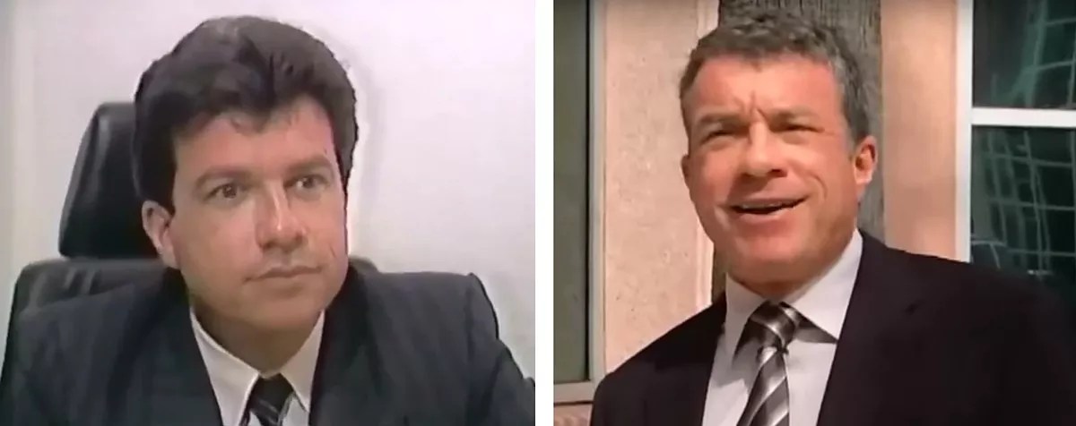 The Ticket Clinic founder Mark Gold in a 1988 WSVN interview (left) and a 2009 appearance on truTV’s Speeders Fight Back.
