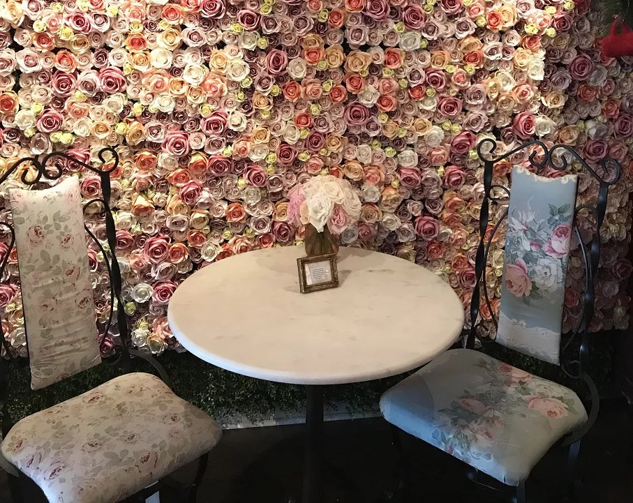 Ann’s Rose Wall is a cherished staple of the Las Olas all-in-one coffee, wine, and flower shop.