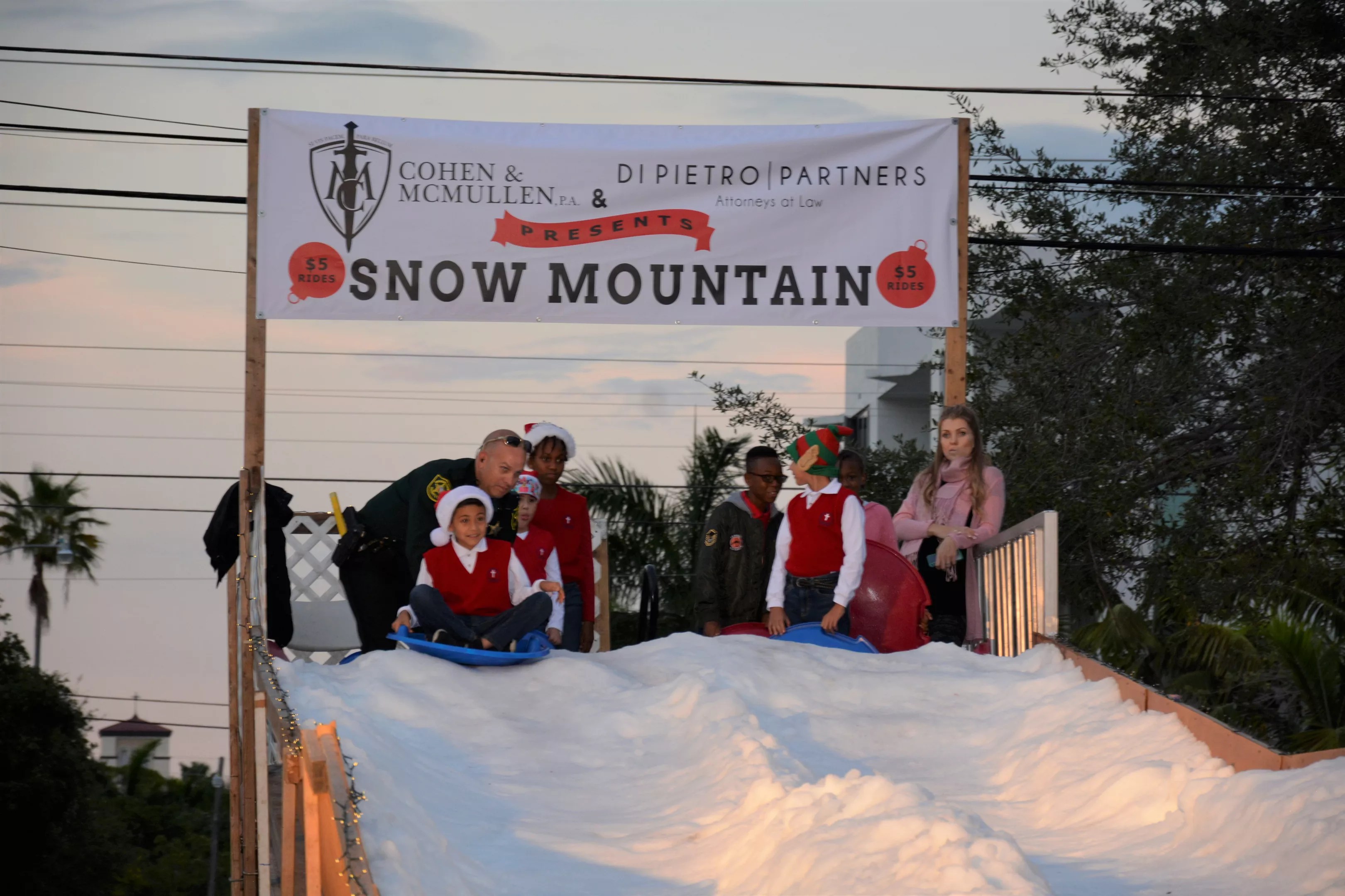 The 57th annual Christmas on Las Olas in Fort Lauderdale invites you to go sledding on its 70-foot hill.