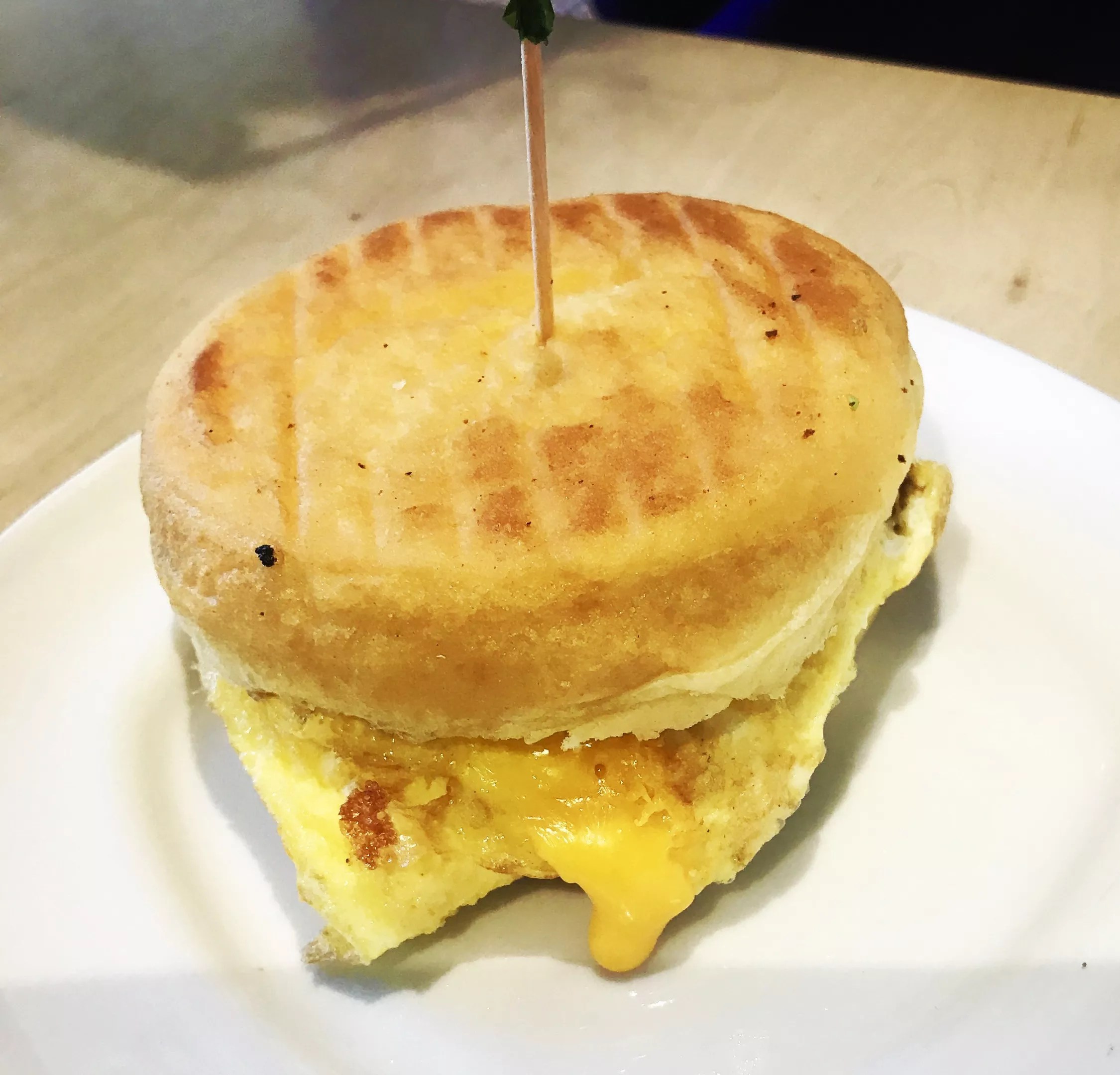 The Dough Boy, a homemade doughnut breakfast sandwich, draws crowds.