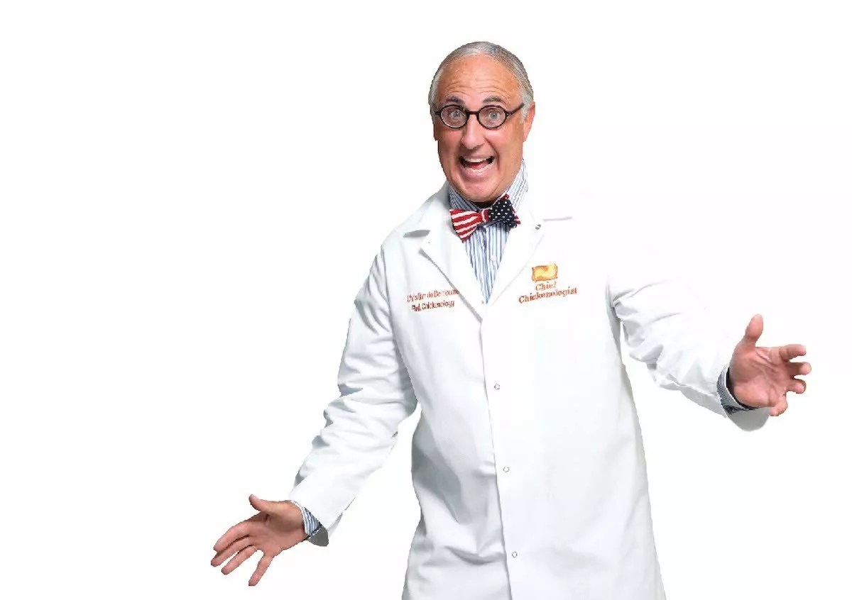 Famous for many things – including the sale of Pablo Esbobar’s Miami Beach mansion in 2020 – De Berdouare has worn many hats over the years, from real estate investor to entrepreneur. But his favorite title is “Chief Chickenologist,” the oversize-glasses and white lab coat-wearing spokesperson for his Chicken Kitchen restaurant chain.