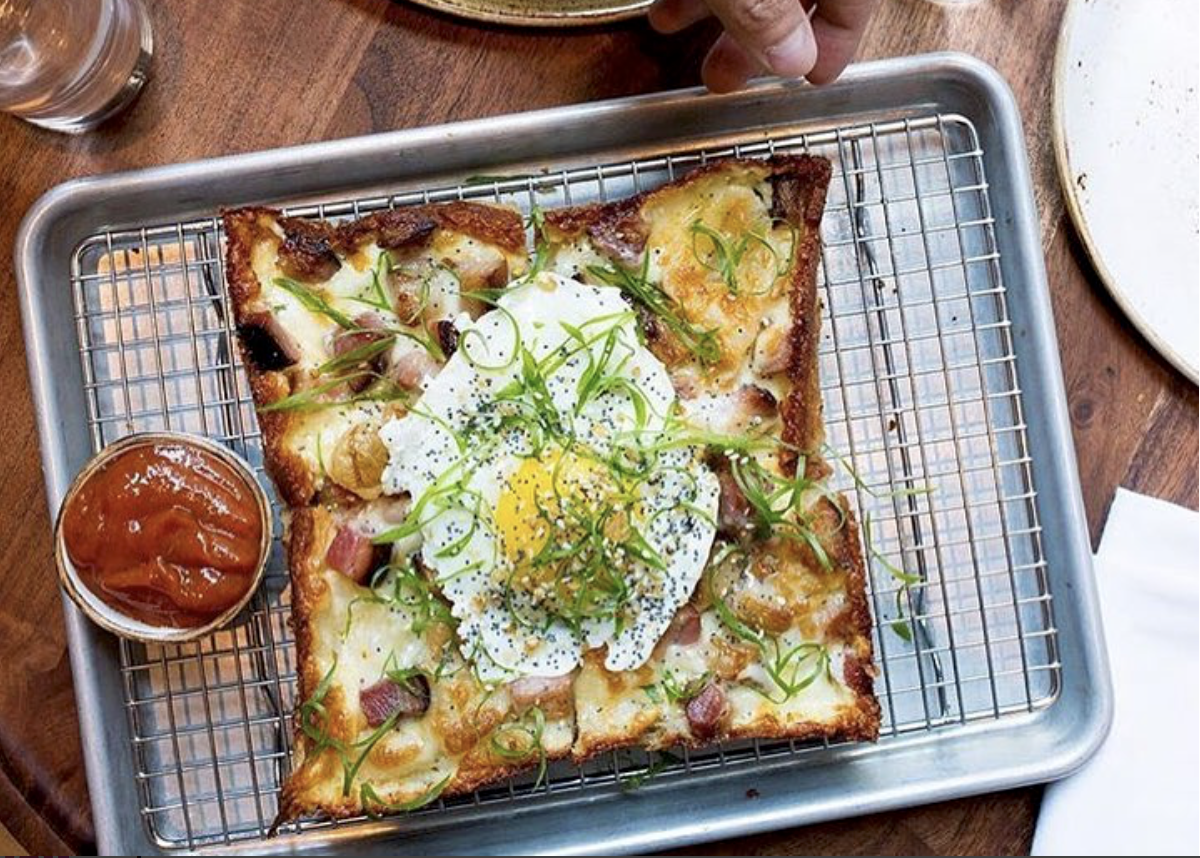 2. The Corner. The second concept from Three Kings Restaurant Group, this Detroit-style pizza spot serves square pan pizzas as well as salads and Italian-inspired sandwiches. Each choice of red or white pie ($10 to $18) pays homage to its respective origin: The New York City style provides the coveted simplicity of traditional cheese and red sauce, while the Snoop spices things up with spinach, garlic, and salsa verde. Looking to the personal pizzas of his youth as inspiration, Talde has created a deep-dish, crisp-crust pie that takes 48 hours to prepare but pays off in its depth of flavor.