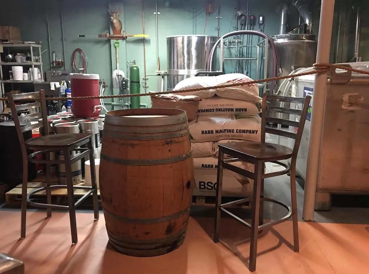 A view of the Invasive Species brewhouse from the taproom.