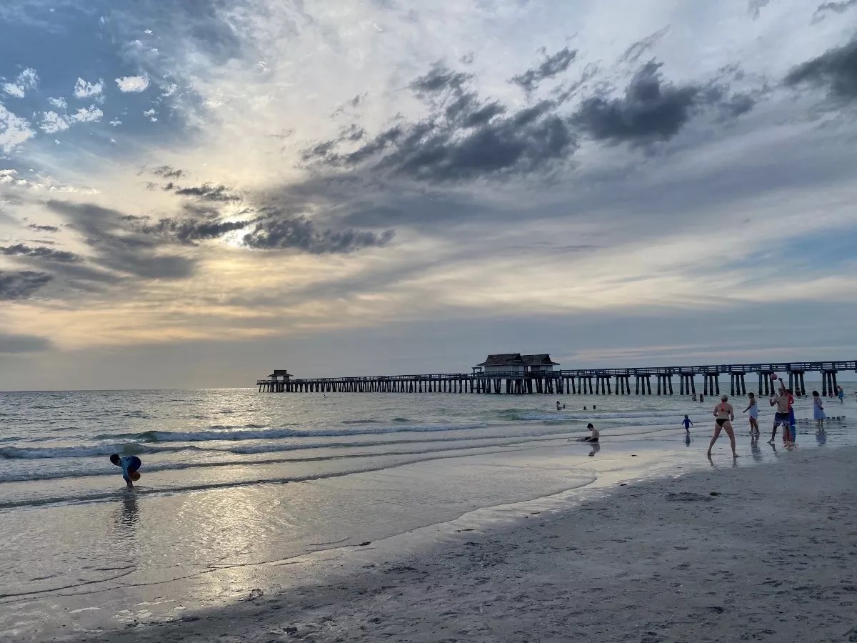 But as I made my way south toward the Naples Pier, the crowds got thicker. Some groups were congregating beneath canopies. Loud music blared from a makeshift DJ rig a man had set up on the sand.