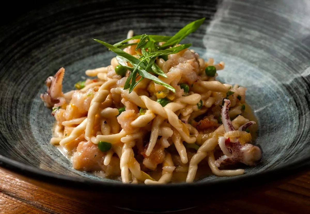 The dish, featuring handmade pasta made by Rocchio himself, is among the chef’s favorites. It’s just one small part of his daily four-hour, pasta-making routine. Using up to four different flours, the chef combines his ingredients to create the perfect consistency – elastic but with a bit of a bite – before twisting and shaping them each by hand.