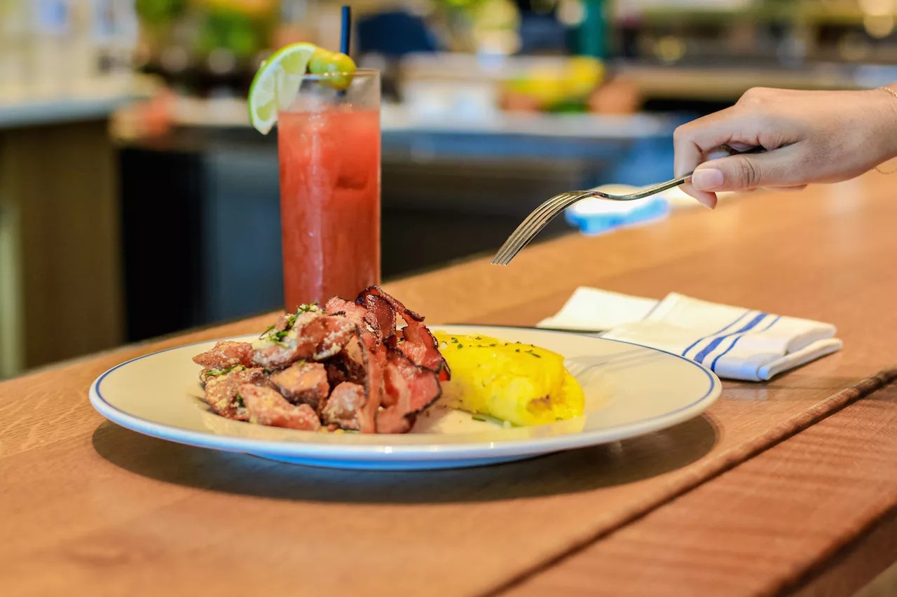 1. Cafe Boulud. Good French fare appeals to all senses, making for a definite winner for a morning-after fix. In Palm Beach, Cafe Boulud takes it up a notch by infusing authentic South Florida flavor to classic dishes, some of which you can enjoy on New Year’s Day as a three-course prix-fixe brunch menu. Start with a berry tartine with grilled country bread and triple cream cheese, a pistachio parfait with pomegranate and apple butter, or the hamachi crude with shies, edamame, and daikon. For the main course, choose from options such as the quiche lorraine with baby spinach salad, a crab back benedict with English muffin and hollandaise, or, for an extra $10, the 8 oz. black Angus filet mignon with gratin dauphinoise and super green spinach. End your meal with a Buche de Noel a la vanilla with caramelized pear ice cream or a coconut cremeux with elderflower ice cream. There will also be live music in the terrace and courtyard. Price