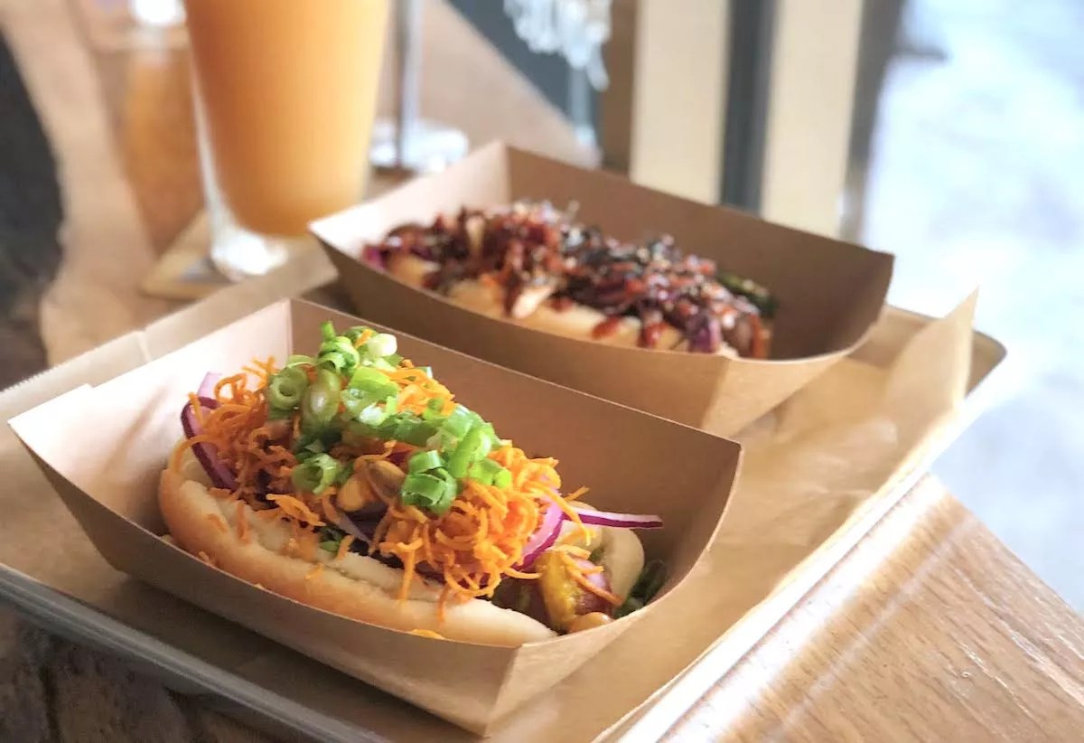7. D.O. Double G. When Garrett Memphis opened Growlers and Howlers in Fort Lauderdale the plaza that’s home to his first fast-casual concept, Poke House, it didn’t serve food. Recently, the growler filling station and craft beer bar changed that up to include a short list of customizable hot dogs. First, choose your dog: all beef, Kobe beef, or a vegan-friendly wiener. Next, decide on a standard or pretzel bun. From there, it’s a a half dozen toppings that range from the All American with yellow mustard, ketchup, relish, and chopped onion to the Mason Dixon with baked beans, coleslaw, BBQ sauce, and bacon bits. Go for the Far East featuring kimchi, wasabi sour cream, sriracha, shredded nori, and sesame seeds or the Machu Picchu, a dog topped with a spicy aji amarillo emulsion, Peruvian choclo and cancha-style corn, and a hearty helping of crispy fried sweet potato tendrils, scallion, and onion. Colorful and flavorful, these dogs are the perfect pairing for a cold pint of brew or to stave off hunger before you head home with a growler full of suds. 636 N Federal Hwy., Fort Lauderdale; 954-530-6524; facebook.com/DODoubleGHotdogs.