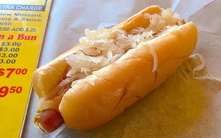 3. Coney Island Joe’s. Coney Island Joe’s is owned and operated by a man named Elliot Garber who makes some of the best New York-style Coney Island hot dogs on this side of the country. The place is named after the original Coney Island Joe’s that opened in Brooklyn in 1952. Today, Garber is quick to point out that his dogs aren’t just New York-style hot dogs. They’re authentic New York-style hot dogs that “pop” when you take a bite. Garber has been making and serving each and every dog himself since he opened the place 15 years ago. The menu offers a number of versions, from a plain grilled dog with ketchup and mustard to a true New York pushcart water dog topped with yellow mustard, sauerkraut, and chopped onions. Sure, the giant yellow-and-blue tent isn’t really a restaurant – it’s more of a giant hot dog stand exposed to the elements and looking a little ragged. But that’s a real New York City pushcart in there, and those are real Sabrett hot dogs he’s cooking, shipped straight from New York. What this place lacks in ambiance, it makes up for with plenty of New York pride; customers come as far as Riviera Beach and Homestead for a taste of nostalgic New York. When you get there, say thank you to Garber: He saved you a 1,400-mile trip. 6401 Sheridan St., Hollywood; 954-966-8800.