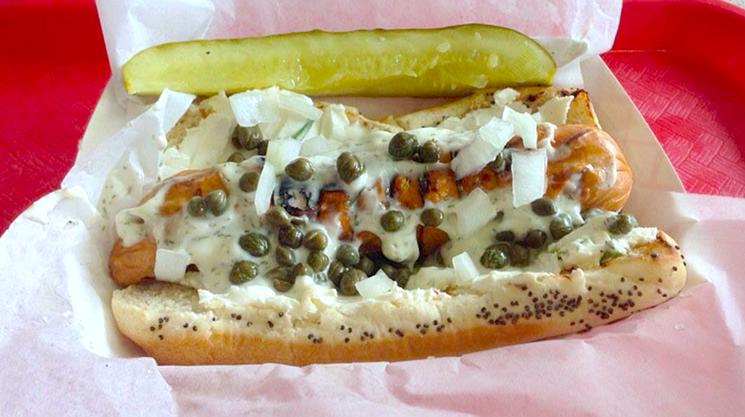 According to a handy Food Republic info chart, there are indeed plenty of dogs out there: around 40 different ways people around the world chow down, hot dog style. From the Philippines’ bright-red dog served bunless with rice, a fried egg, and banana ketchup to Sweden, where they serve their dogs wrapped in a roll of mashed potatoes, shrimp salad, and fried onions. And while those dogs might seem a little extreme, a more Americanized variety can be found right here in South Florida.