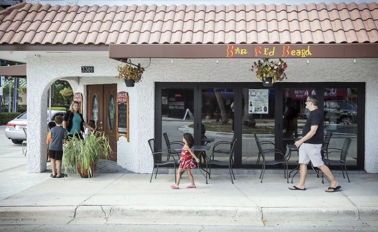 My wife Valarie our son Mike and myself are proprietors of this small family owned establishment. Mike is the general manager and the inspiration behind the name “Bar Red Beard”, you’ll know why when you come in and see him. Mike has been in the food service industry for over 12 years and brings the experience and expertise that we are very comfortable with as we embark on this new chapter in our life. My wife and I are both retired and along with Mike we have dreamed about opening our own place for years. I grew up in Cleveland, Ohio with six siblings and a very close family of aunts’ uncles and cousins. Most weekends were spent with that extended family and countless varieties of individual family recipes. I learned to cook from my mother and grandmother who were both exceptional cooks. All of our recipes are based on the skills and traditions I learned from them. My mother Geraldine and father Mariano established and grew our family values and taught us to be open and share with others as if they were part of our family. Our menu honors their positive influence and culinary expertise. Geraldine’s pizza by the slice is based on my mother’s recipe for homemade pizza. Mariano’s meatballs are a tribute to him and his favorite dish of spaghetti and meatballs. All our menu items are made from scratch including the dough for our pizza, barbeque sauce for our pulled pork sandwich, the special sweet and spicy dressing for our tots and chicken salad sandwich and of course those hand rolled meatballs in wonderful red gravy. Our tots are really homemade never frozen. The American craft beer movement most symbolizes our values of honest, local, and homemade products. We set out to build on that concept with our homemade recipes as well as present other American crafted products. We have worked hard to source all of our ingredients from American providers including our beer and wine lists that are exclusively American made. We want to share our American crafted concept in an atmosphere that is warm, welcoming and most expresses our desire to have our guests feel like they are at home. We designed the bar based on the old local corner tavern concept. Dark wood bar back highlighted by green walls and a hand painted American flag proudly displayed on the wall. There are two large glass doors that fold out of the way that opens up the entire corner. Two large awnings wrap around the corner with outside seating to take advantage of the wonderful Ocean breezes. Wood grain bar and tile floor complete the local tavern atmosphere. We are located on the corner of NE 33rd Street and NE 33rd Ave. between the Ocean and the Intercoastal just north of Oakland Park Blvd. in Fort Lauderdale. So our concept of American crafted is simply that a presentation of beer, wine and food that has been crafted in America and presented by our family with love