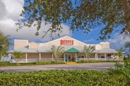 There is never enough team spirit at Duffy’s Sports Grill in Deerfield Beach. Football helmets line the aisles, and the giant bar area boasts 13 huge projector screens that play every game and sport imaginable. If that’s not sports overload, young women in jerseys offer enthusiastic “how are yas?” at every corner while they walk past restaurant-area walls littered with photos of athletic icons such as Jack Nicklaus, Lance Armstrong, and Mickey Mantle. Regulars readily offer up that it’s the best happy hour in town, with two-for-one on everything from 4 p.m. to close everyday.