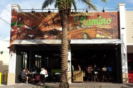 Delray Beach wasn’t complete until it received its new taqueria-ish El Camino. Here, owners Brandon Belluscio, Brian Albe, and Anthony Pizzo — also of Cut 432 and Park Tavern — deliver Mexican soul food and a topnotch tequila bar just a few steps from the city’s Atlantic Avenue restaurant row, at the entrance to Pineapple Grove. The building is adorned with colorful street-style graffiti from artist Ruben Ubiera, including a custom portrait of Emiliano Zapata Salazar, leader of the Mexican Revolution — along with Day of the Dead skulls and an El Camino car. Inside, bright lime-green booth seating and a handmade, rustic wood-beam bar run the length of the space where bartenders sling craft-style margaritas and customers put them back like they’re nothing more than water on a hot summer day. The establishment offers patrons a taste of Mexico through the lens of executive chef Victor Meneses, originally from Juarez. Like the drinks, the food is a little more craft than you’d expect, including hand-formed blue corn tortillas, homemade chorizo, and more than a dozen sauces, including Meneses’ secret recipe for hot sauce. In addition to tacos, speciality items adorn the appetizer and entree menu, with highlights like smoked brisket nachos and charred octopus or chili relleno pan-fried with egg — no breading — to keep with Meneses’ family recipe. A favorite starter: the crispy fried pork skins, or chicharron. Crunchy strips of fried pig’s ear let off a muffled pop in your mouth with every bite, like some sort of edible fire cracker, served with a cactus slaw and sour cream. Read our full review.