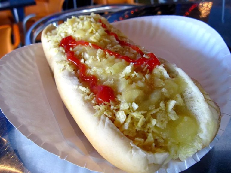 Los Perros’ lone Broward outpost is hidden deep in western Lauderhill, a suburban area that’s not exactly renowned for its nightlife. Even so, this location of the clubby, Miami-based hot dog chain sticks to the Colombian formula that made it a hit: Its walls are painted a dark blue, and the lighting is dim, and the room is festooned with plasma TVs playing music videos from Daddy Yankee and Shakira. The dogs are colossal and topped with a kitchen sink’s worth of ingredients, including (but not limited to) bacon, mozzarella cheese, crushed potato chips, pureed pineapple, onion, ketchup, sour cream, and house pink sauce. The fatty/salty/starchy/sweet dogs make fantastic drunken food, so it’s a good thing Los Perros is open late – till 6 a.m. on weekends, in fact.