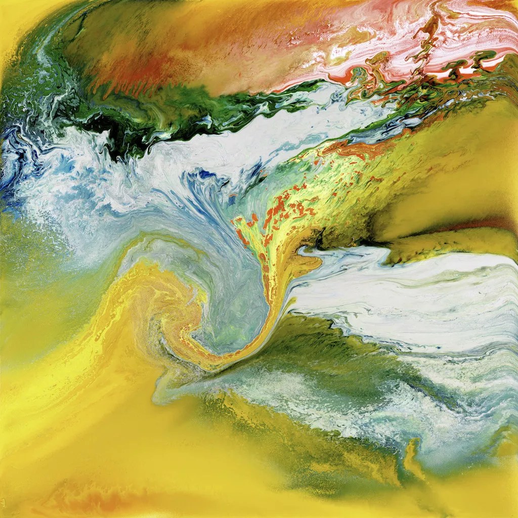 “Sometimes I’ll pour really fast where the paint moves really quickly,” he says. “Other times, I’ll slow it up to a waltz.”