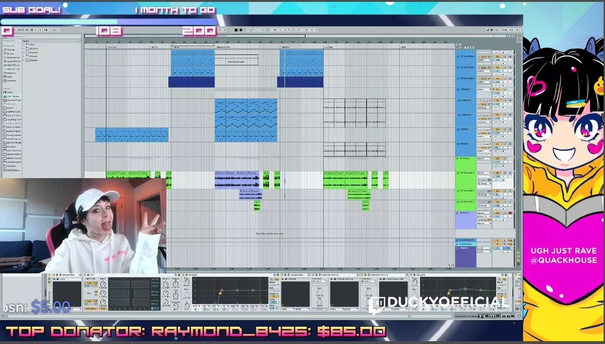 Producer Ducky has been streaming on Twitch for more than two years and is excited to dedicate more time to the platform, where her daily streams feature her DJ’ing, producing, providing demo feedback, gaming, and discussing art. As a veteran of the streaming world pre-coronavirus, she predicts the streaming boom will subside when artists begin touring again.