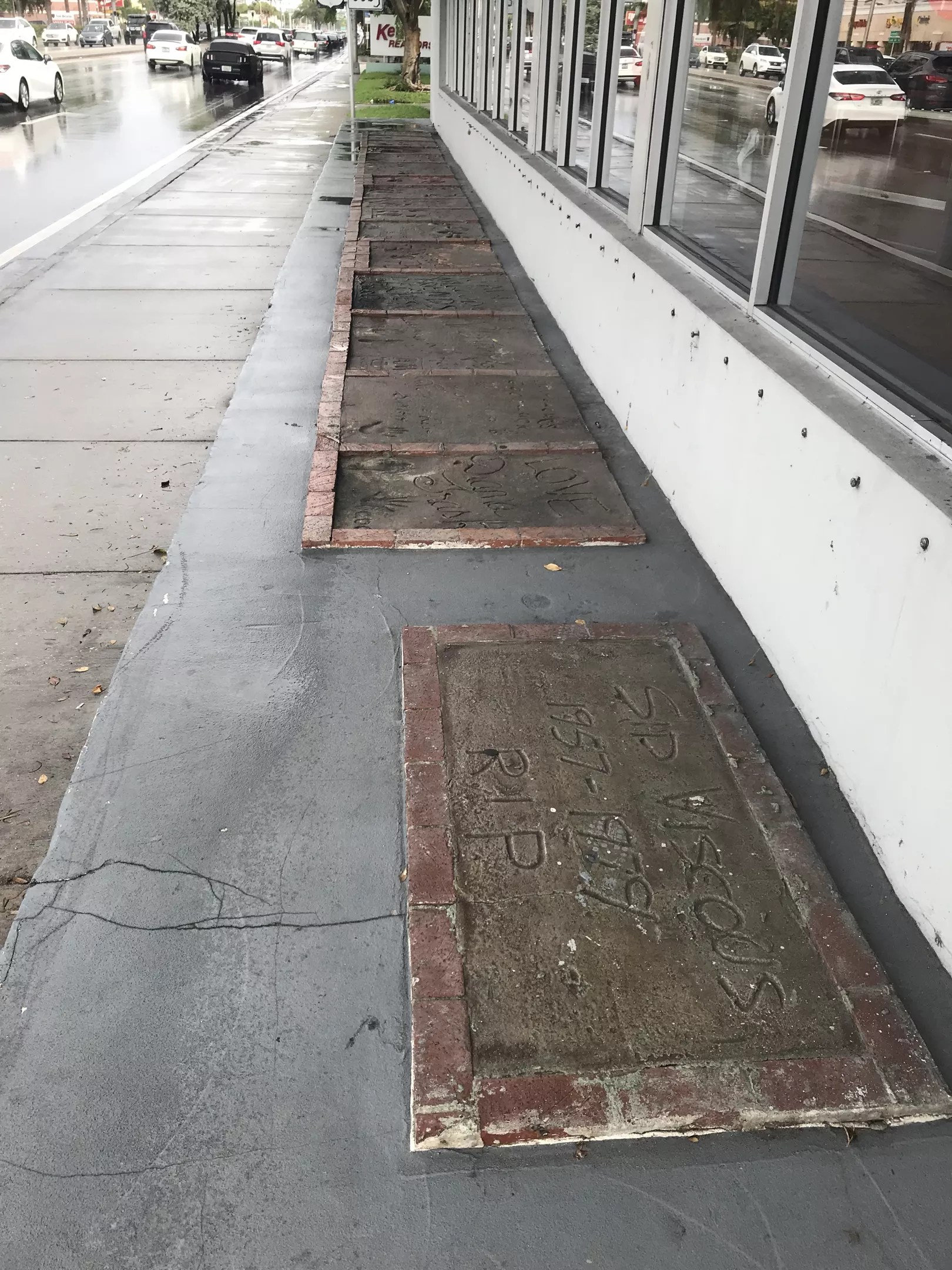 Splashed across the sidewalk outside Hustler Hollywood is a long row of handprints and footprints in swaths of worn cement. A closer look reveals names belonging to visionaries. Iconic musicians such as Rick Springfield, Charlie Daniels, Peter Frampton, ZZ Top, Ted Nugent, and Jaco Pastorius have all left their mark on the stretch of pavement outside a store that now sells sex toys.