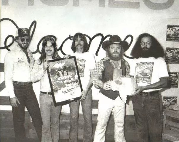 ZZ Top with former Peaches employee Greg Goode (center) in 1976.