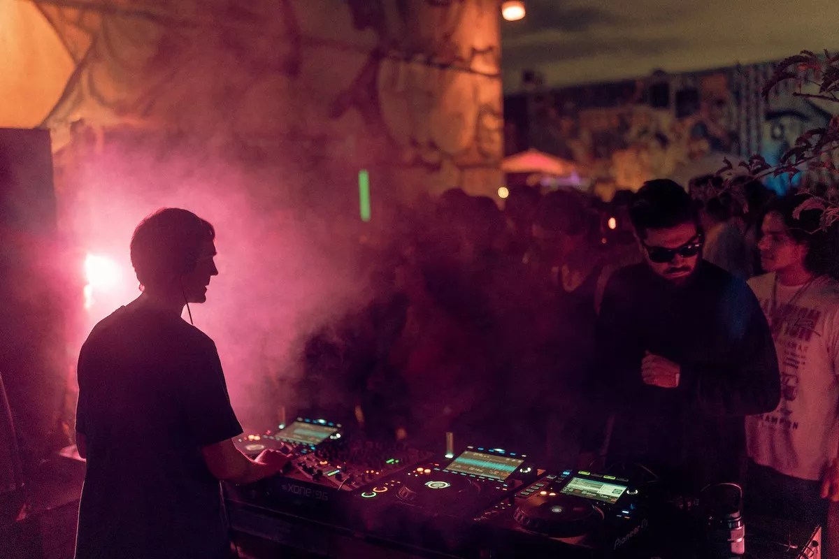 The venue’s indoor space, dubbed “the Box,” consists of a giant room that grows infinitely hazy as the night rages on. Here you’ll encounter local DJs dishing out the pulsating grooves for dancers to lose themselves in. At one point, a young woman takes a break from dancing to find a corner to puke in – though the fog and low, purple lighting allow for some obfuscation of what’s occurring. Once she collects herself, she’s back on the dance floor, acting surprisingly lucid, nodding her head and shuffling through rhythmic chaos.
