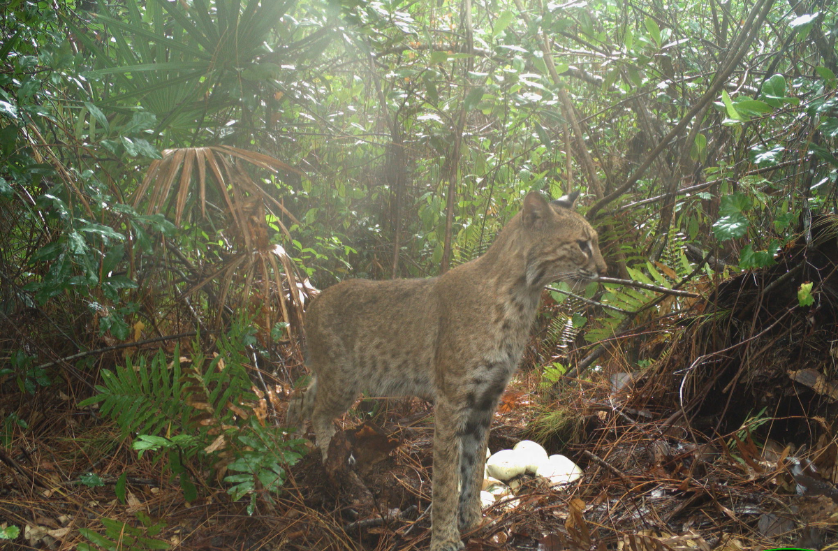 According to the study, the male bobcat was first spotted on camera observing the unguarded python nest, and then “consuming, trampling, caching, and uncovering the eggs.” Scientists determined that, based on the patterning of its fur, the same cat returned later that evening when the brooding python was at her nest but didn’t get too close or interact with her. The next night, the bobcat returned when the python was there. This time, the python and bobcat were captured “facing each other.”