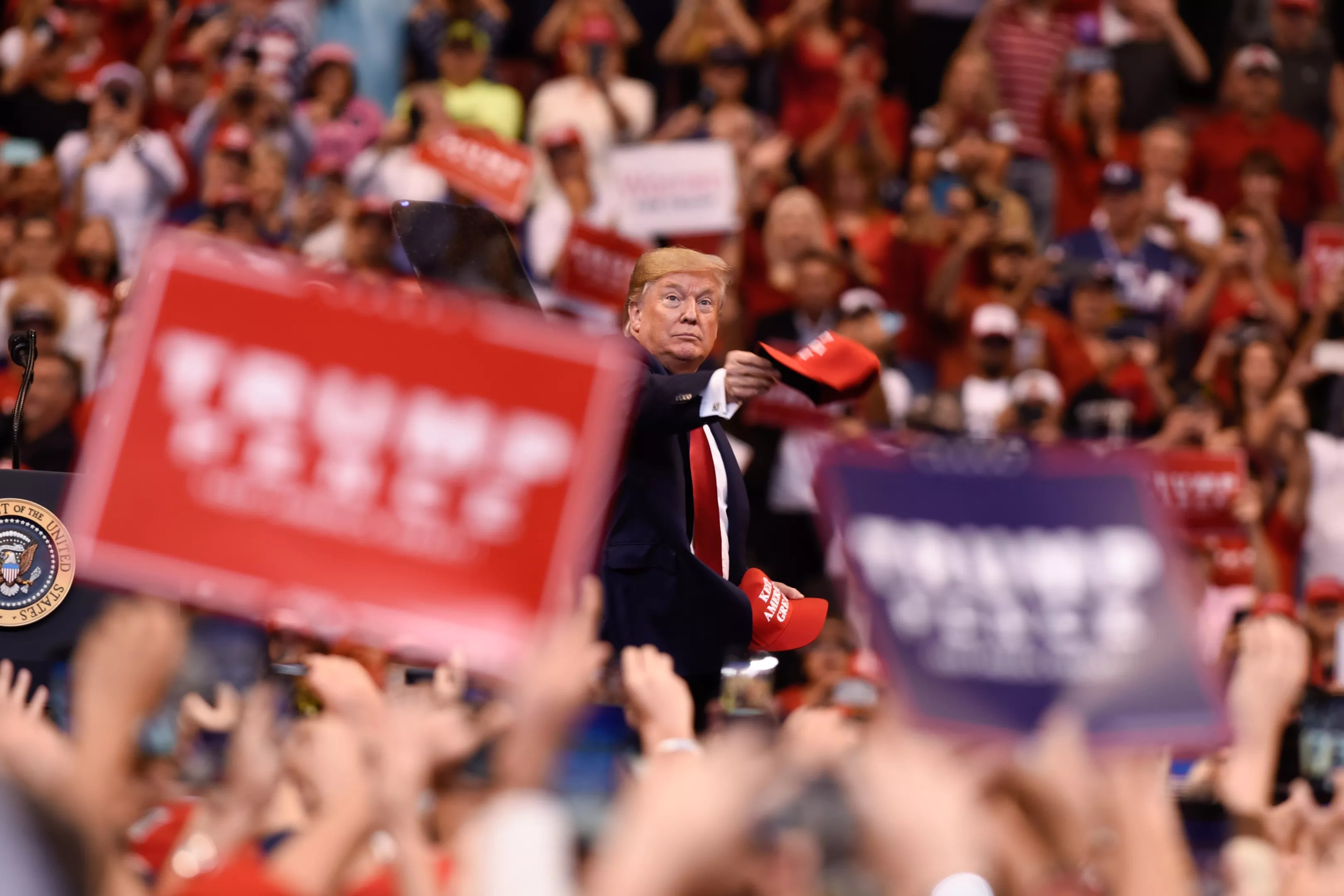 It was an interesting music choice for a politician some would argue is on his own sinking ship. Last night, as the House Judiciary Committee scheduled its first public impeachment hearing, President Donald Trump took the stage in Broward County for his first rally in the Sunshine State since changing his residence and officially becoming a Florida Man.