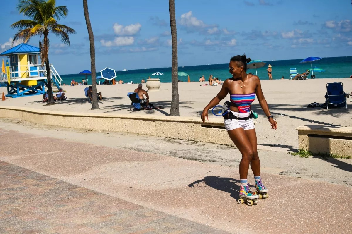 But Auggie Van Meter, who turned to roller-skating during the height of the COVID-19 lockdowns as a safe and healthy means to escape her own home, says the ban would be devastating to her. She plies the Broadwalk each month, and has found community among others who do the same. Just last weekend, Van Meter organized a meet-up where upward of 30 people from across South Florida glided along the Broadwalk and grabbed a bite to eat when they were done.