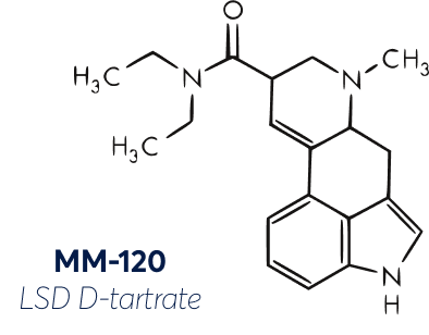 The “investigational product,” i.e., LSD, that patients may receive as part of the anxiety study has been dubbed “MM-120,” where MM stands for MedMind and “120” is just the numerical designation of the compound, according to a company executive.