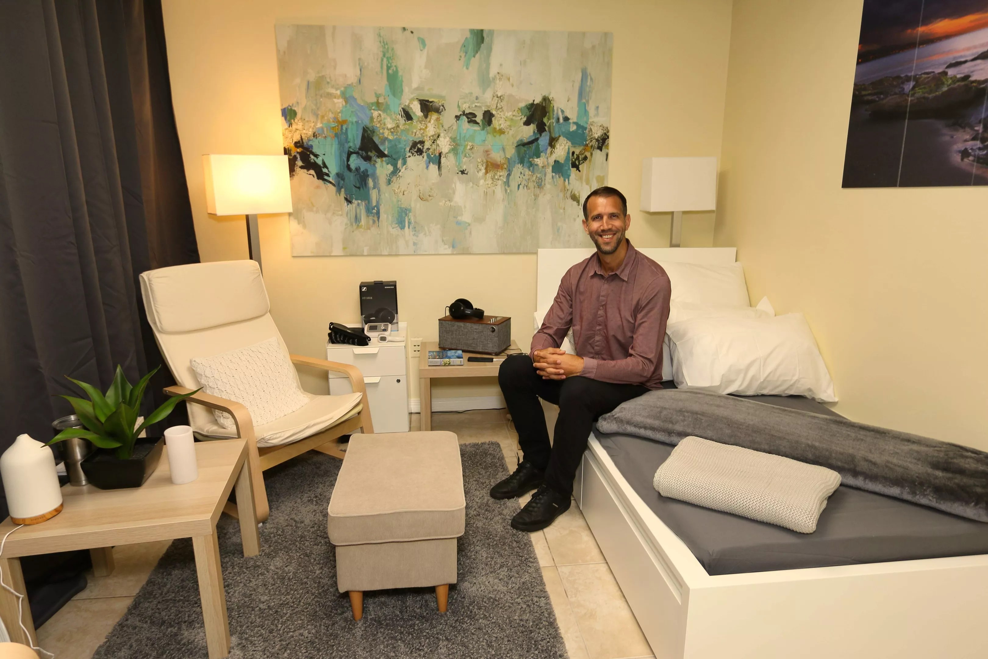 Segal Trials invited New Times to tour the facility, which includes the cozy trip room, complete with a stereo, headphones, a futon, and lots of pillows.