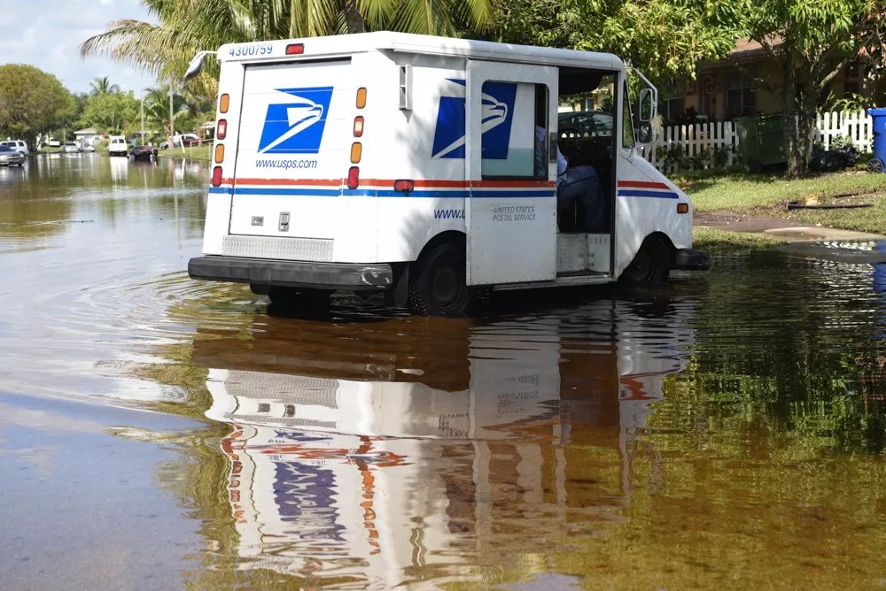 A US Postal Service driver attempts to deliver mail in Fort Lauderdale’s Edgewood neighborhood.