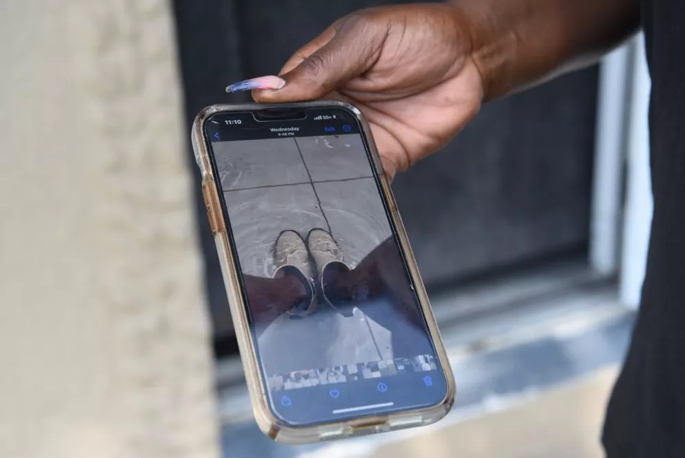Natasha Jones shares a photo of the inundation of the apartment where she, her son Dayshawn, and their dog Cookie have lived since October 2022.