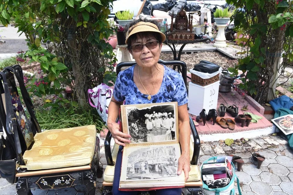 Hanna Petrakis holds up a photo album she set out to dry.