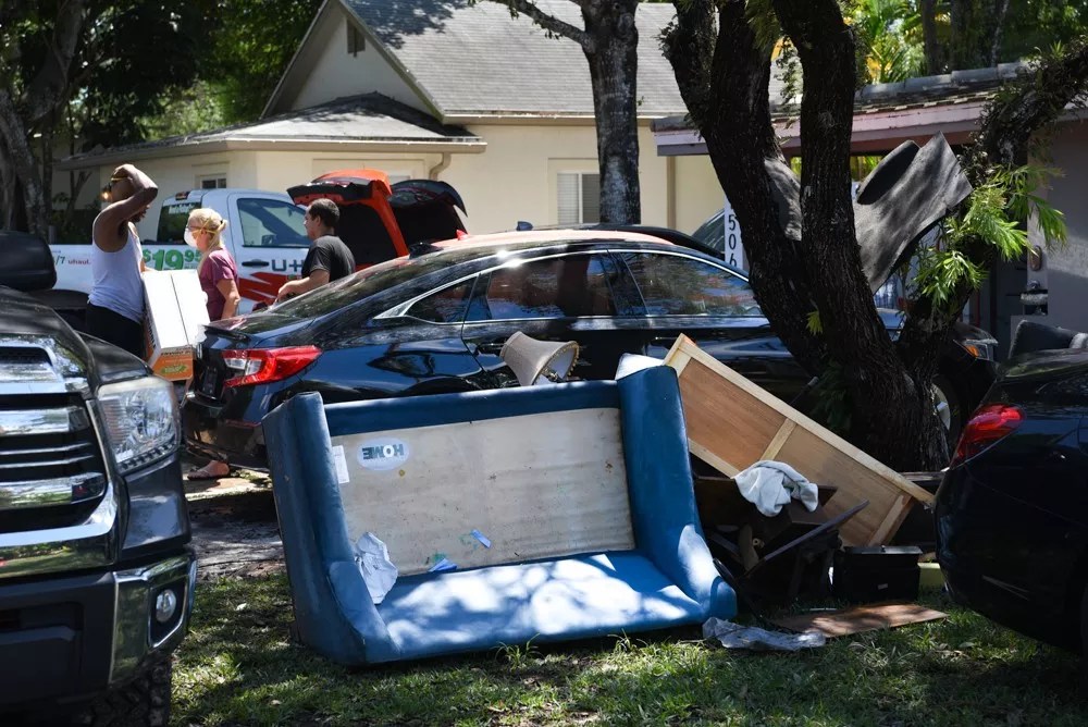 Fort Lauderdale residents dispose of water-damaged furniture.