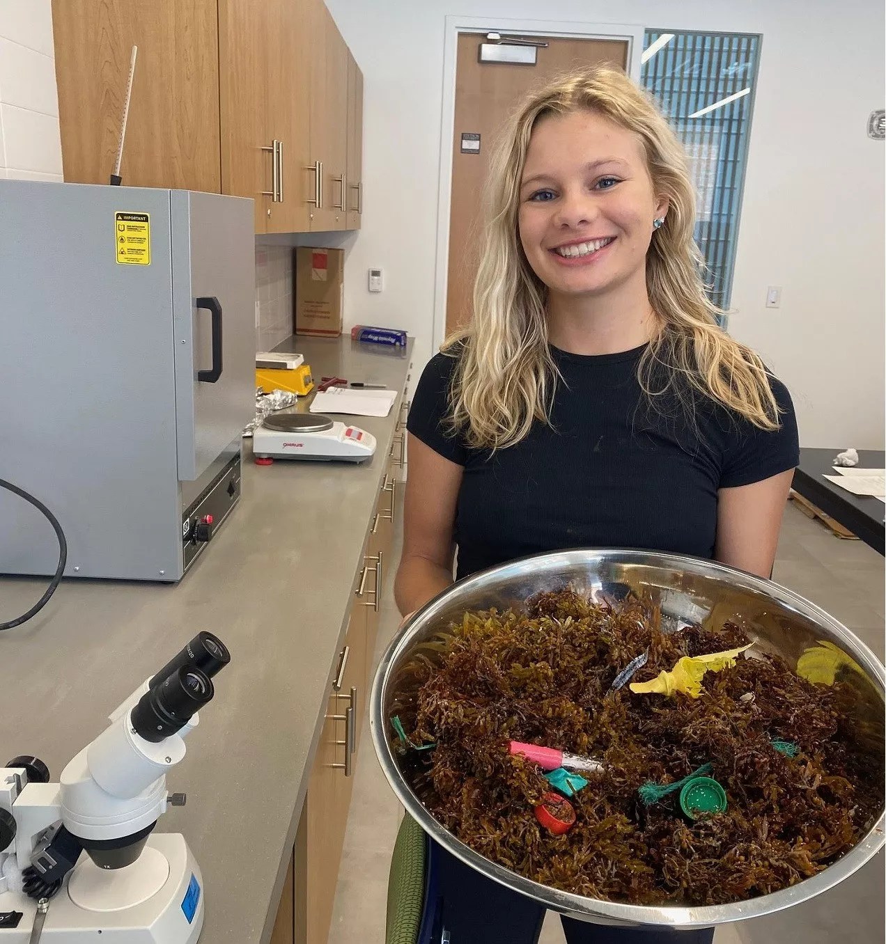 In a new study, Stetson University student Charlotte Kraft and environmental science professor Wendy Anderson have discovered that a strikingly high proportion of the stinky brown seaweed piles arriving on shore consist of seaborne plastic pollutants.