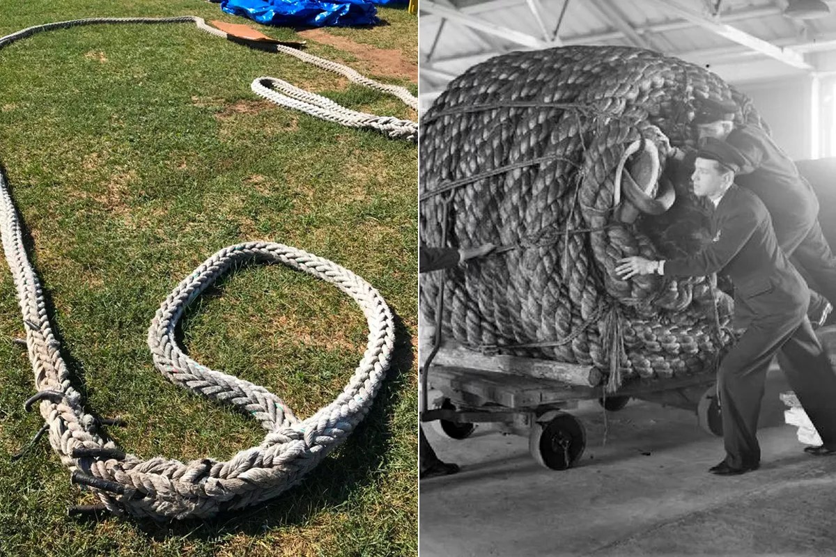 Ship hawser’s make for great lawn borders. At right, to show scale, a hawser of the British Navy during World War II.