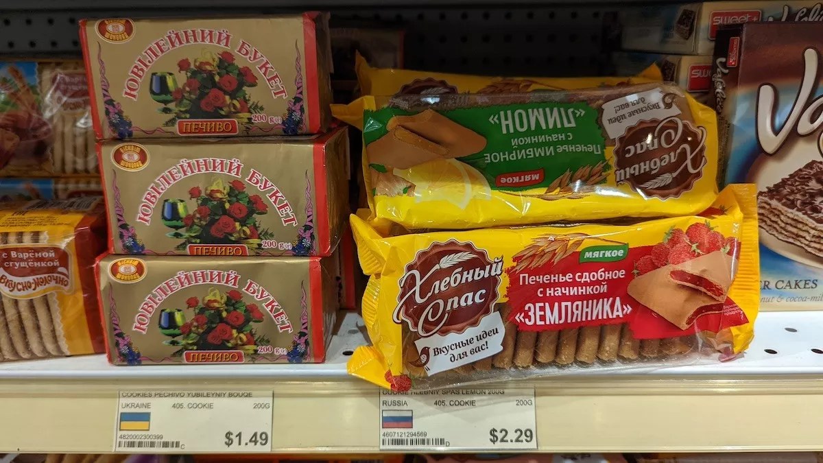 At Matryoshka, Russian and Ukrainian sweets are displayed side by side.